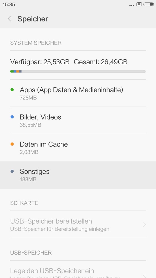 Dieser "interne Speicher" ist der kostbarste bei einem Android-Gerät. Xiaomi verzichtet also auf die beliebte Verarschung, nur einen kleinen Teil des freien Speichers als "internen Speicher" freizugeben.