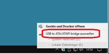 Ich habe eine ATA/IDE Platte aus einem alten Rechner. Auf der Platte befinden sich Videos und Fotos. Ich habe die Platte mit einem Adapter an den USB Anschluß meines SATA Rechners angeschlossen um die Fotos und Videos zu sichern.