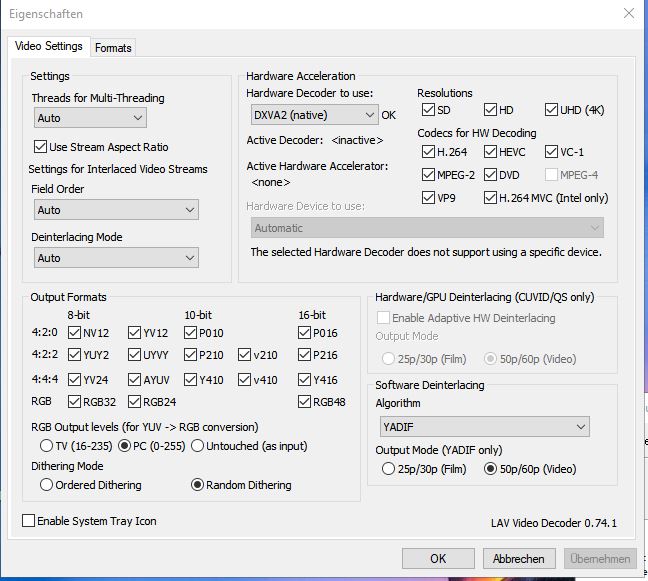 gelöscht_35042 Nachtrag zu: „Meine Codec-Konfiguration sieht so aus: Klick Formats: Alle.. DVI dürfte nichts ausmachen. Ich habe jetzt mal 3 ...“