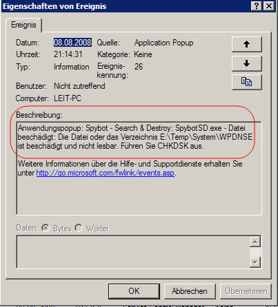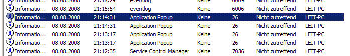 Hallo, Ihr! Hier noch einmal ich in alter Sache. Habe Rat von Jüki befolgt.Klasse Tipp, danke!!! Folgendes kam unter Ereignisanzeige, Anwendung: