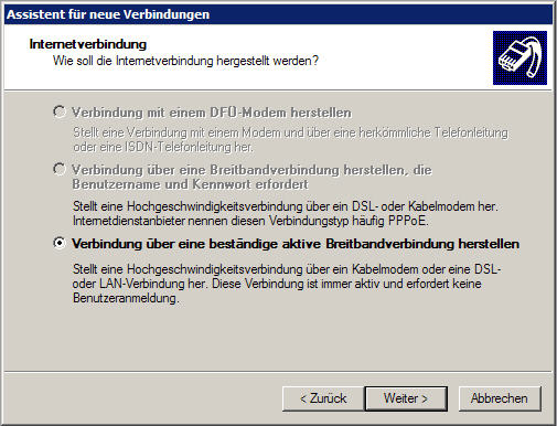 Nun wollte ich mal prüfen, ob das Arcor- Konto des Besitzers freigeschaltet ist und wollte temporär mal eine direkte DSL- Verbindung einrichten.