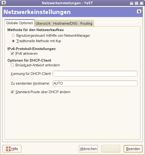 Yast -> Netzwerkeinstellungen -> Karte Globale Optionen