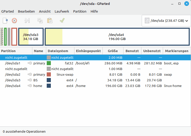 4. Daten-Partition (/home) mit dem Rest der Festplatte.