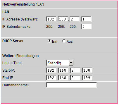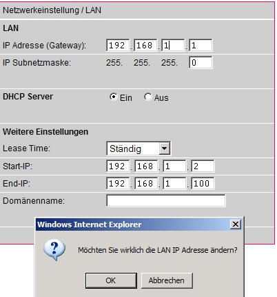 Man kann zwar seine IP-Adresse der des Longshine anpassen, nicht aber auch den Gateway festlegen.
