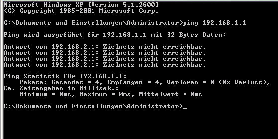 Ich kann den Sinus anpingen - 192.168.2.1, er antwortet.