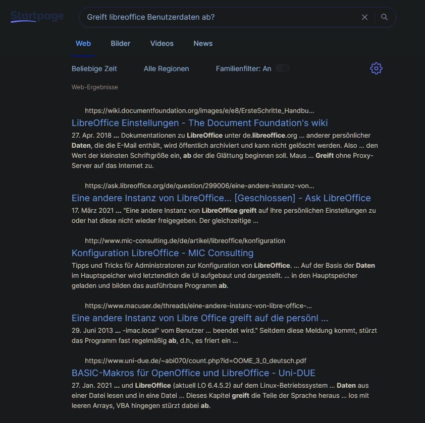 Die Datenschutzerklärung zur Homepage von den Machern von LO ist da an erster Stelle aufgeführt und entspricht der DSGVO in vollem Umfang aber das ist die Datenschutzerklärung für die Homepage und was da beim Besuch gesammelt wird ist klar ersichtlich, unverdächtig und mit den richtigen Addons und Browser(einstellungen) auch zu unterbinden. Das einzige was da stinkt, ist ein Tracking Cookie zu Twitter und den blockt mein PrivacyBadger....