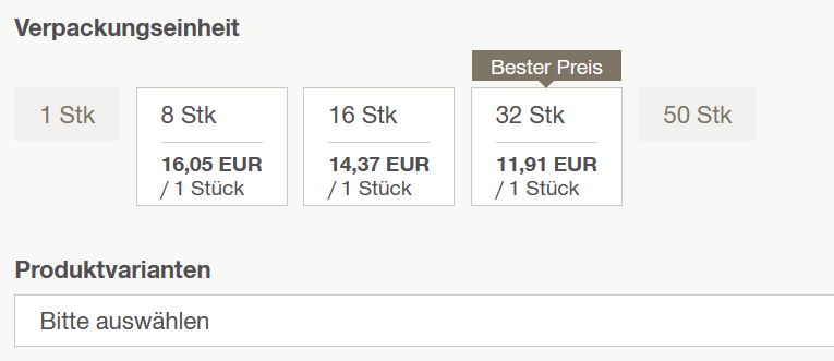 Staffelpreise gibt schon bei E-Bay! Z.B. 1 USB Stick 6,90 € / 4 Stk 6,56 € Stk. Hilti hat auch Staffelpreise. Ich habe nur noch große Verpackungseinheiten gekauft. 8 Stk 16.05 € pro Bohrer / 32Stk 11,91 € pro Bohrer.