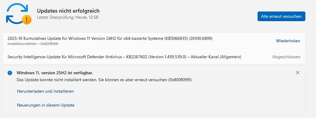 Lade dir mal hier das 25H2 runter und stoße es von Hand an. (das erste x64.msu)