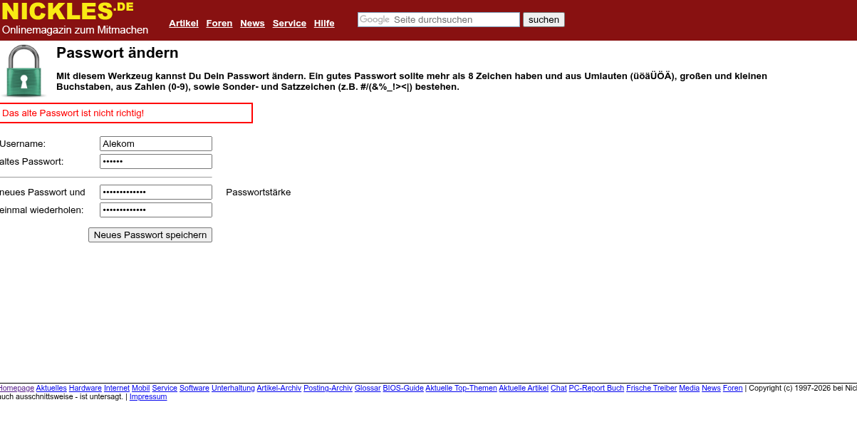 Ähm, bis gerade gebe ich immer mein altes Passwort ein um in den Nickles zu kommen.