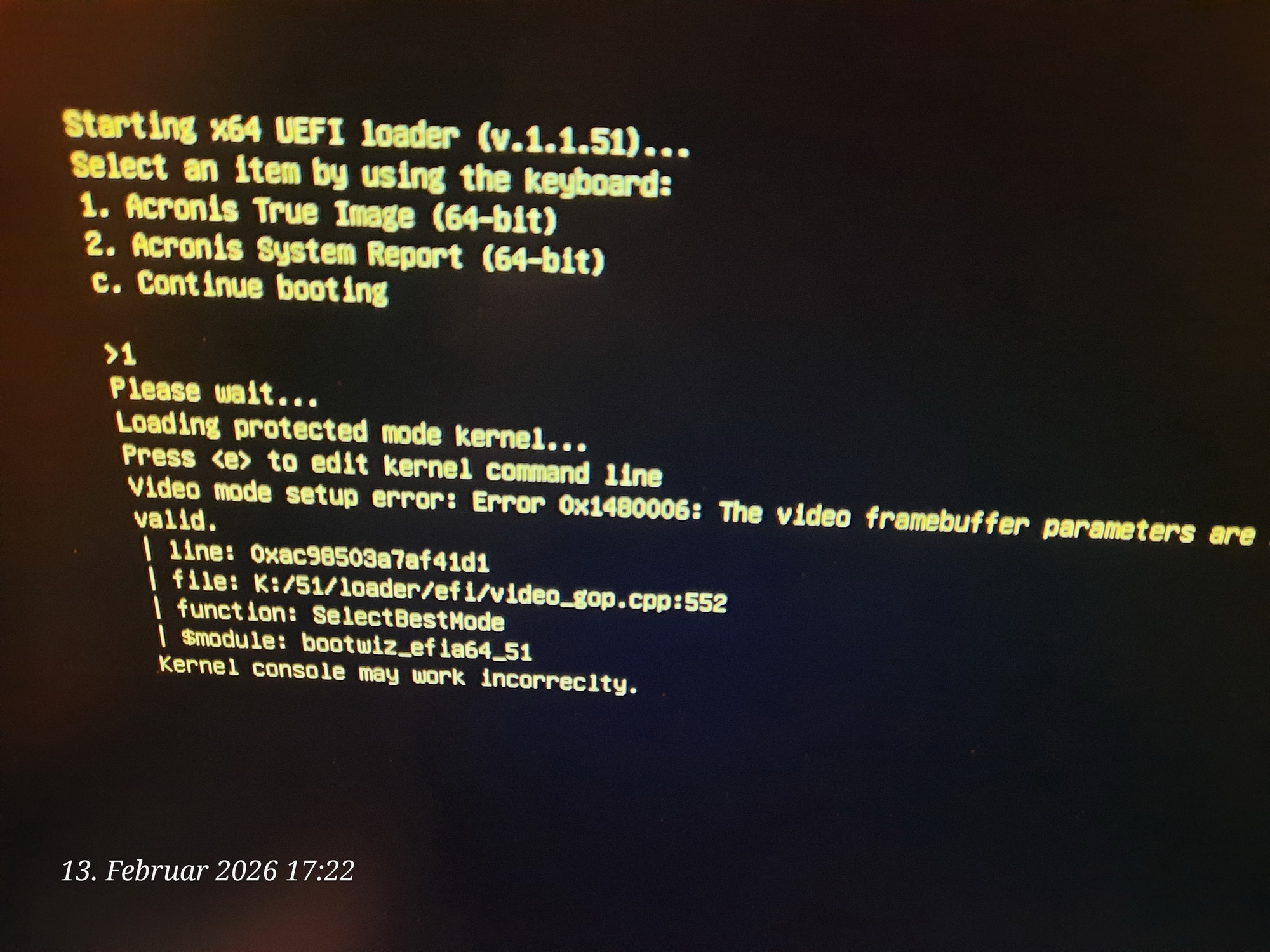 Ich habe versucht Acronis von der Original-CD zu installieren.