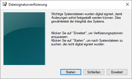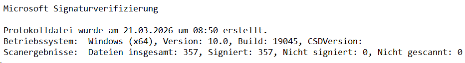 Dadurch wird eine "Dateisignaturverifizierung" durchgeführt und in einer Protokolldatei das Ergebnis ausgegeben.