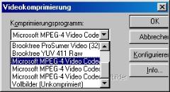 wird eine Option zur Auswahl des gewünschten Videokomprimierungs-Verfahrens