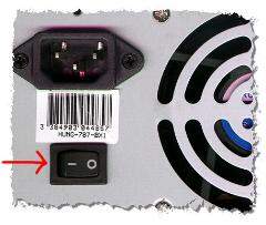 Bei modernen PCs ist der klassche Gehäusefront-Netzschalter nicht mehr vorhanden. Stattdessen wird ein "Taster" geboten, der direkt am Mainboard angeschlossen ist. Immerhin haben auch moderne PC an der Rückseite am Netzteil einen Hauptschalter. Und das ist seit Mitte 1999 mehr oder weniger auch der einzige Schalter, über den sich ein PC definitiv ausschalten läßt - so, als ob der Stecker aus der Steckdose gezogen ist.