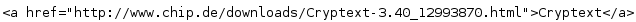 Das Zeug, also die Spitzklammer mit dem anschließenden "a href="" und dem Link zu Chip, danach nochmal " (also Gänsefüßchen oben :-)) und eine zumachende Spitzklammer, jetzt kannst du da irgendwas reinschreiben, also in diesem Fall Cryptext oder irgendwas anderes wie z.B. Klick (machen viele hier auch öfters), danach wieder die Spitzklammer, den Abschlusstag /a, die zumachende Sppitzklammer - und fertig ist dein Link....