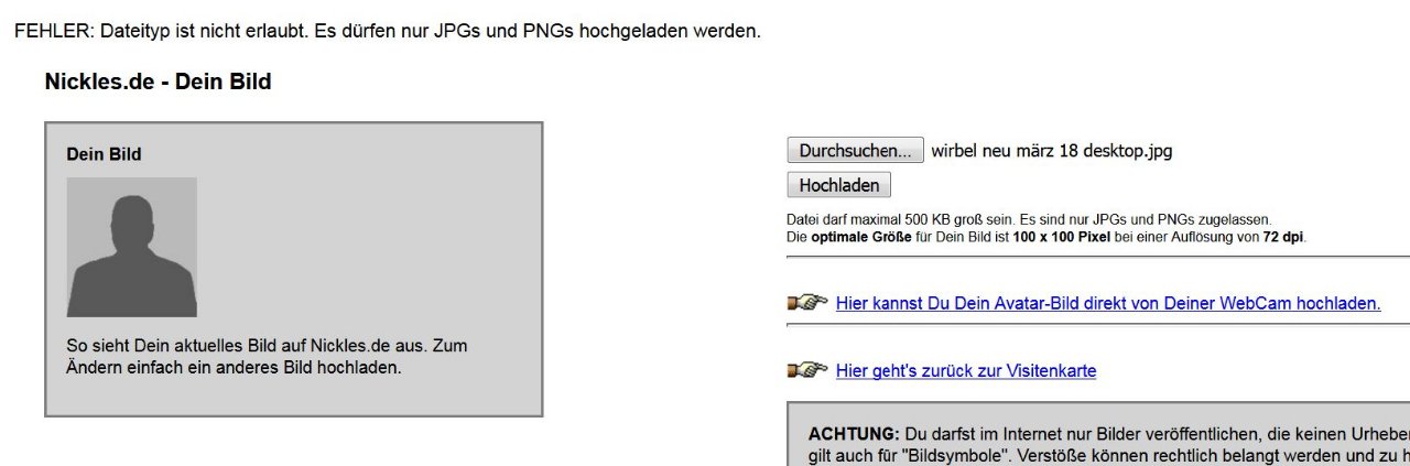 ich möchte mein avatar bild ändern, klappt leider nicht, bin evtl. heut zu doof dafür,