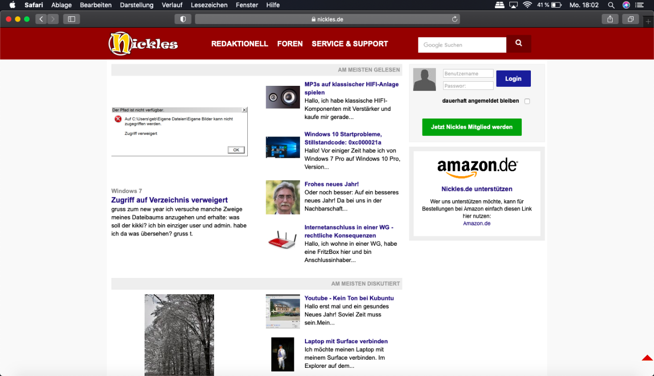 Die Screenshots sind auf der Homepage nickles.de direkt nach dem Einloggen enstanden: