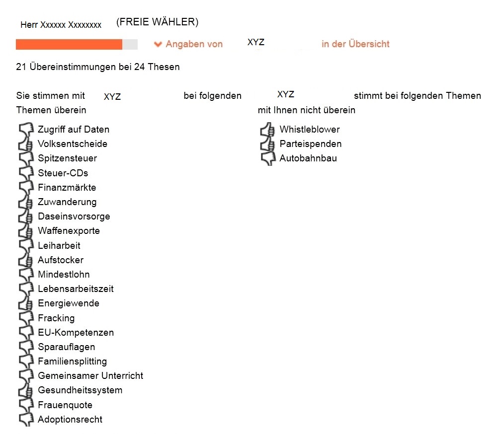 Bei mir "siegte" der freie Wähler mit 21 von 24 Punkten eindeutig.