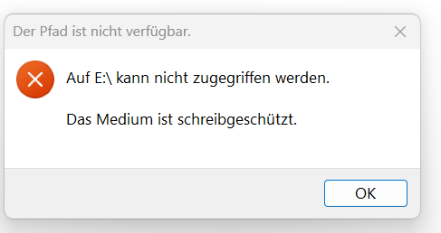Win 11 25H2 der Stick hat einen Schreibschutzschalter. Am Linux Book funktioniert der Stick problemlos.