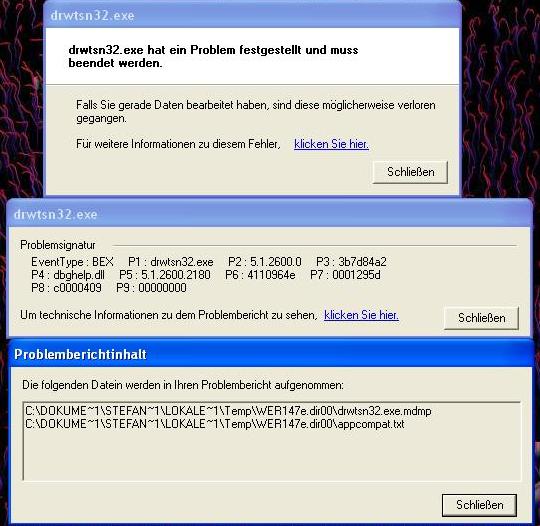 Ich kann mit mein Laptop keine Videos ansehen ! Wenn ich im Arbeitsplatz auf den Ordner mit den ganzen Viedos klicke öfnet sich das Verzeichniss und die Symbole für den Media Player bauen sich auf. Unter die Symbole erscheinen dann noch die Namen der Filme und dann macht der Rechner nichts mehr. Es erscheint nach einiger Zeit eine Fehlermeldung mit drwtsn32.exe .