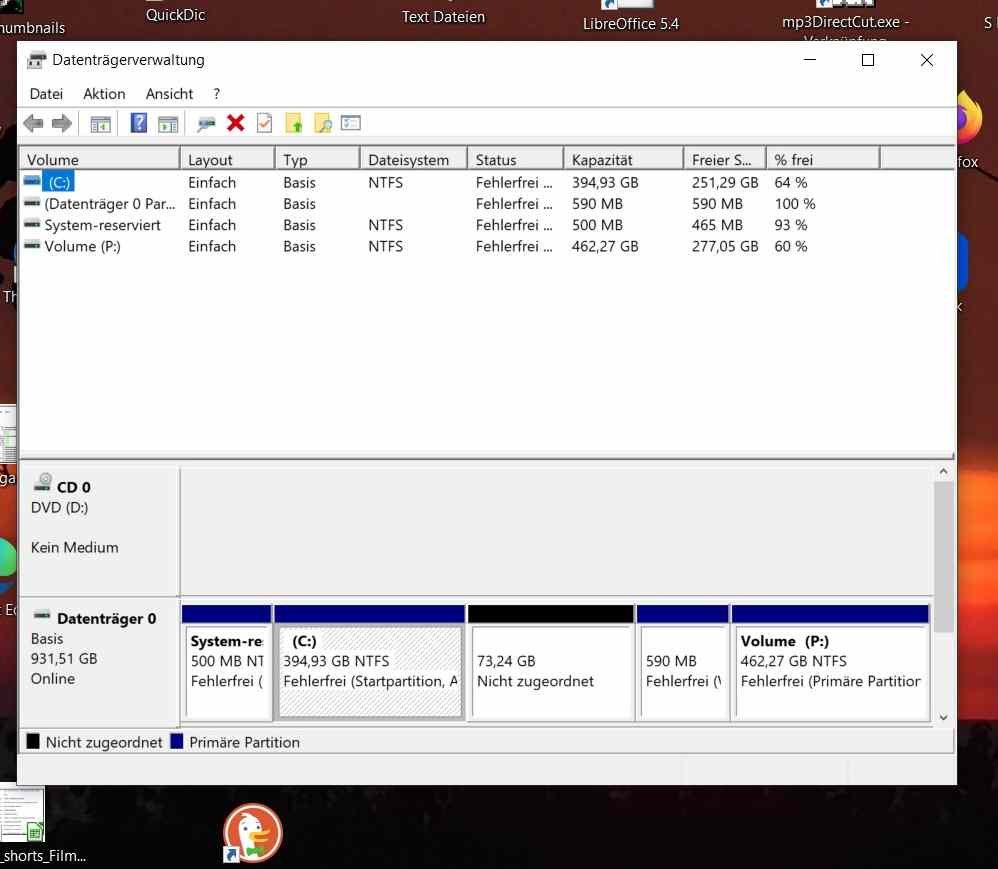 Soeben habe ich eine neue Partition unter Windows 10 erstellt.
