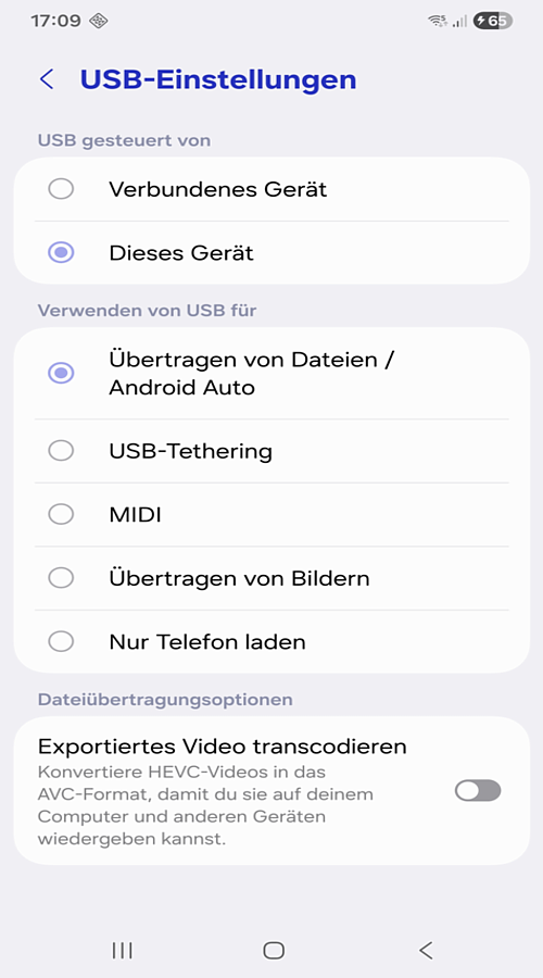 Bei Samsung kommt oben ne Benachrichtigung, wo man noch auf MTP umschalten kann.