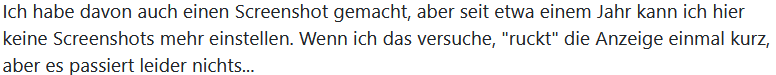 Ich habe davon auch einen Screenshot gemacht, aber seit etwa einem Jahr kann ich hier keine Screenshots mehr einstellen. Wenn ich das versuche, "ruckt" die Anzeige einmal kurz, aber es passiert leider nichts...